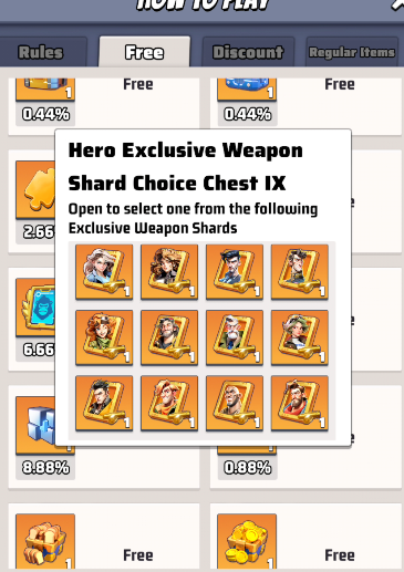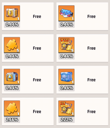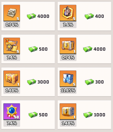 Each store refresh randomly picks 1 sets of items based on probabilities (items may repeat).