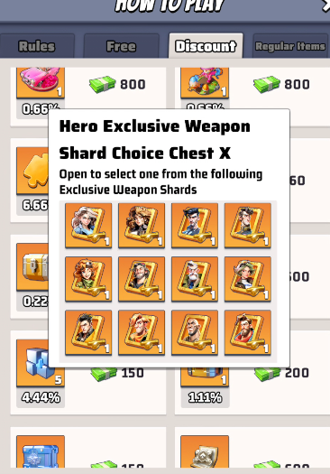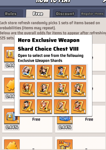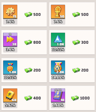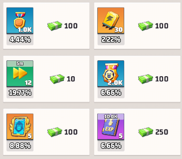 Each store refresh randomly picks 2 sets of items based on probabilities (items may repeat).