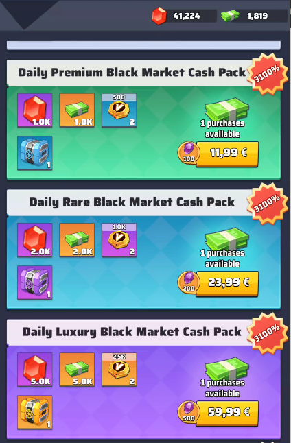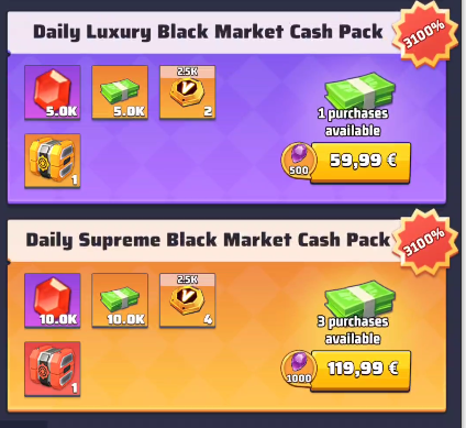 It is possible to buy more βBlack Market Cashβ clicking on the Pack icon and purchasing specific packs.