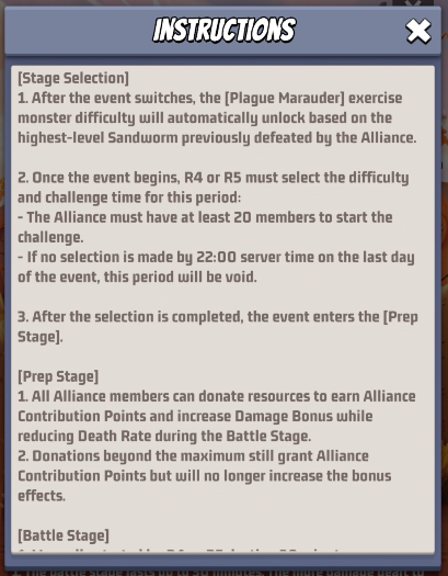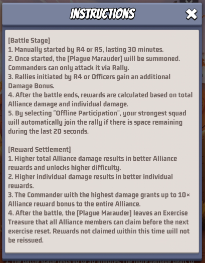 - Week 1 off-season: Return of Alliance Exercise and Zombie Siegets