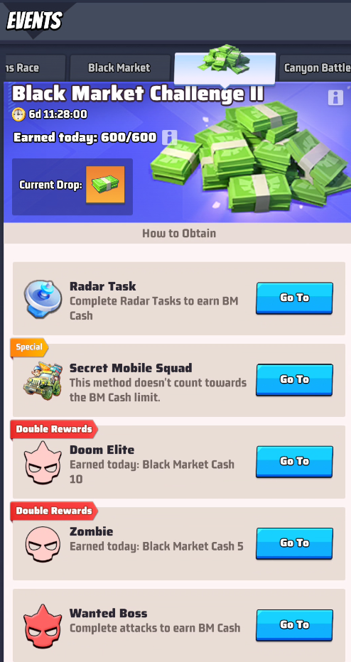 Secret tasks in the Secret Mobile Squad during the event will also give extra BM Cash. This BM Cash doesn’t count towards the daily limit.