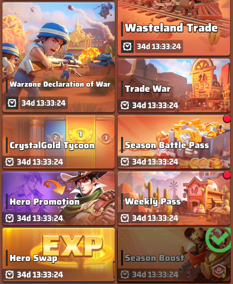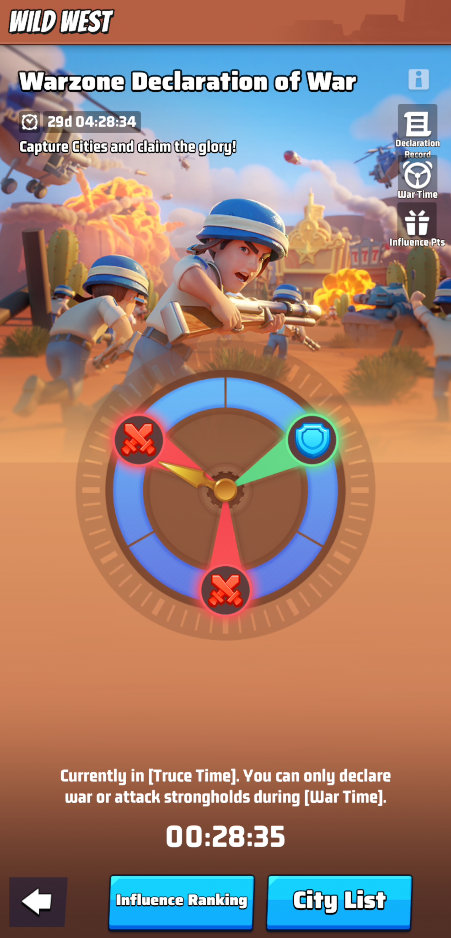 Day 1 of Week 3 the new tile “Warzone Declaration of War” becomes available and it will allow to manage from now on the Declarations of Wars based on the Alliance Safe Time.