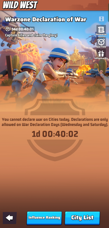- During your Safe Time, you are still able to attack other Alliances’ cities and strongholds as long as there are not under Safe Time. In case of cities you also must respect the restriction of being able to do a declaration of war only during War Declaration Days: Wednesday and Saturday