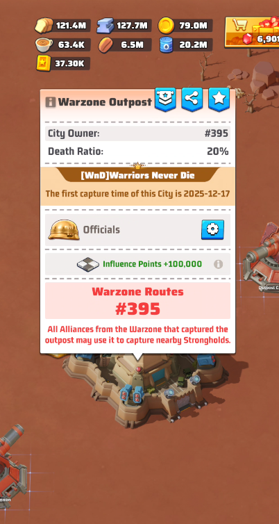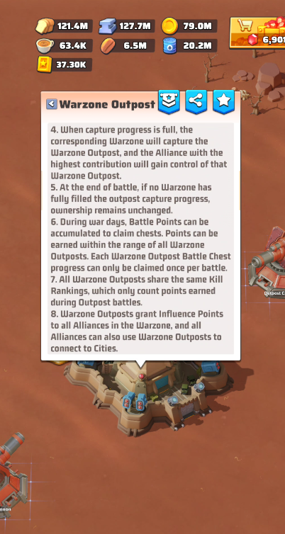 All alliances in the Warzone have to contribute to repair it, each commander has a limited daily contribution of 3.