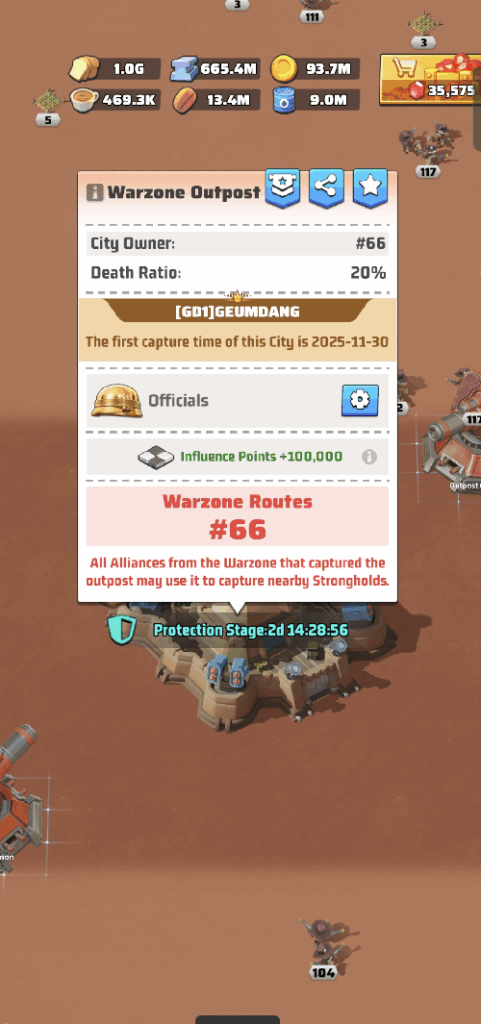 - Warzone Outposts grant Influence Points to all Alliances in the Warzone, and all Alliances can also use Warzone Outposts to connect to Cities.
