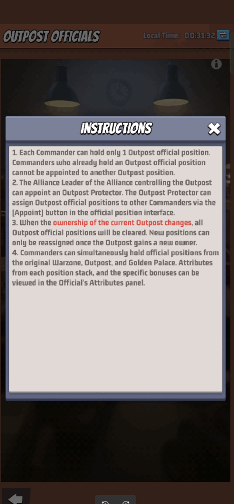 - At the end of battle, if no Warzone has fully filled the outpost capture progress, ownership remains unchanged.