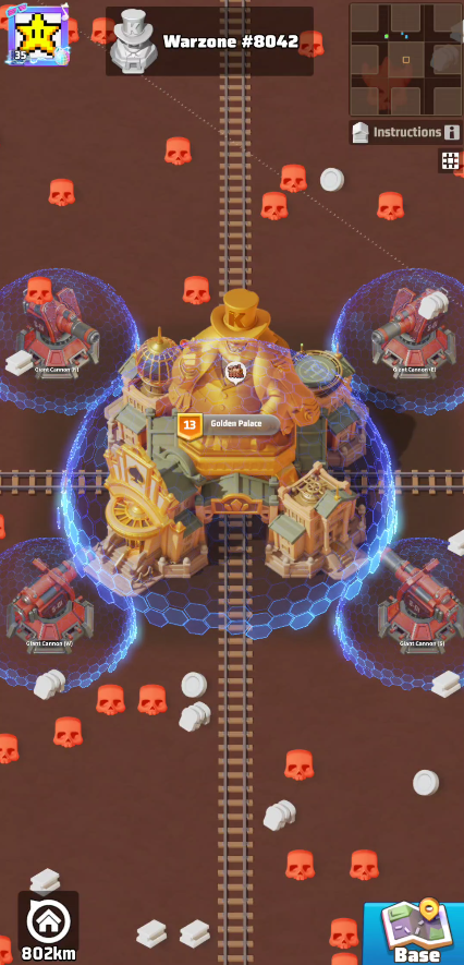 The Golden Palace is placed in the center of the map, and it is guarded by 4 cannons.