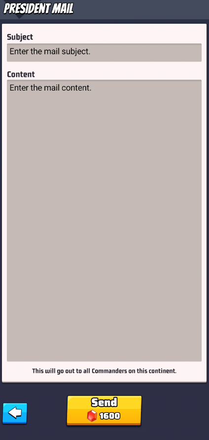 Clicking on Presidential mail the proclamated Golden Palace President can send a mail to all warzones.