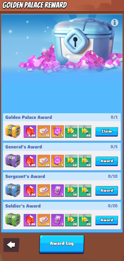 Let’s now dive in into the Rewards available for the Golden Palace war: