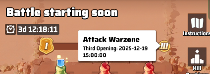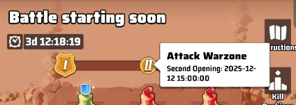 - There are 3 battle time slots during the whole season, they happen on Fridays at 11:00 server time.