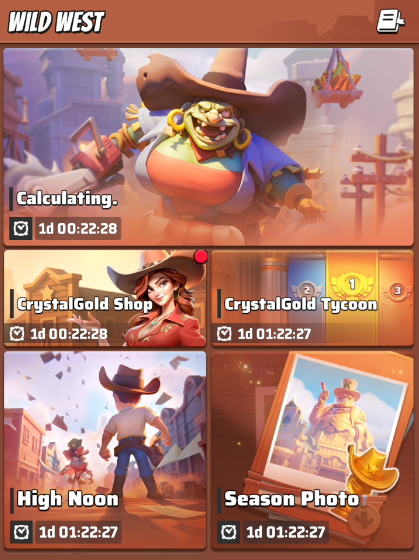 - Season event tiles disappear, only CrystalGold Shop, CrystalGold Tycoon, High Noon and Season Photo are still available. The main timeline of Season 5 events is still accessible.