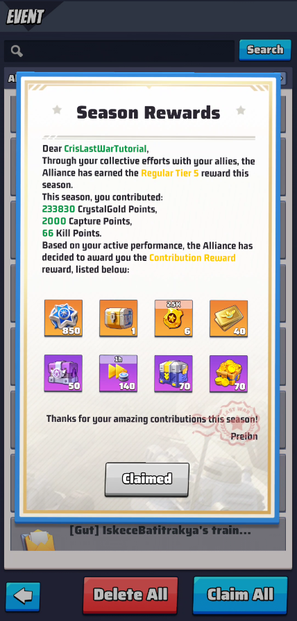 Please note: you can invite people from outside of your alliance to give them rewards but each player will be able to receive only 1 season reward, so hopping from one alliance to another and trying to get more rewards is useless.