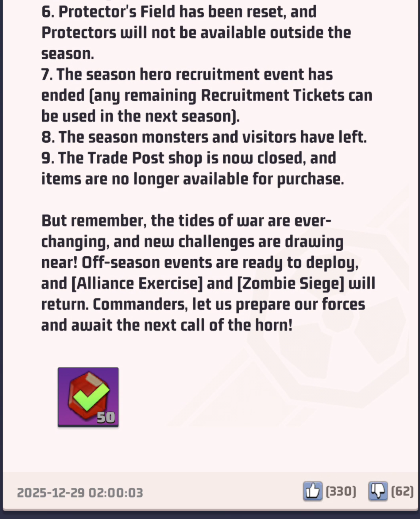 - Alliance Loot chests will be reset: distribute them before they are gone