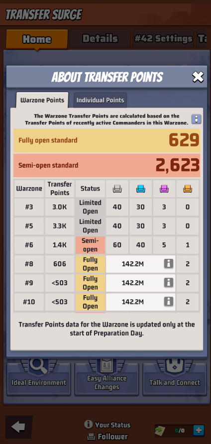 - Remember that: warzone and individual points are specific to warzone groups, the ranges might not be the same for your group