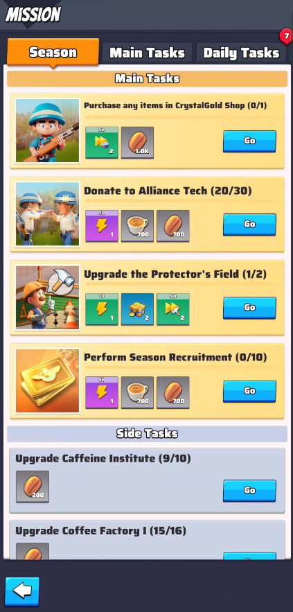 (icon above Heroes button) gets enhanced with newly added season main and secondary Tasks.