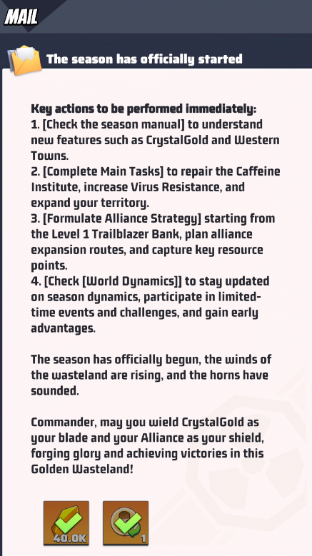 Commander, the Golden Wasteland is on the verge of chaos. A fierce battle over CrystalGold is about to erupt, and the fate of the land will be rewritten.