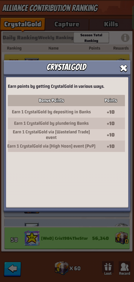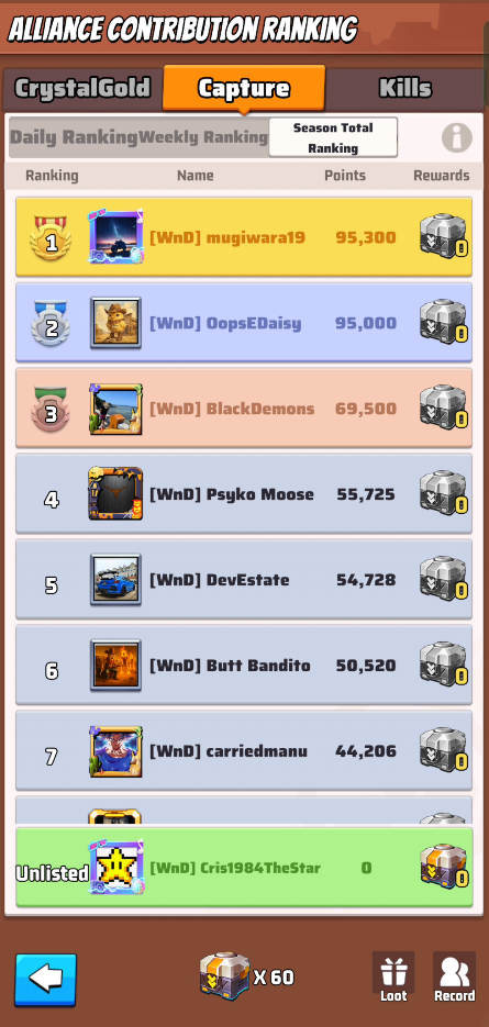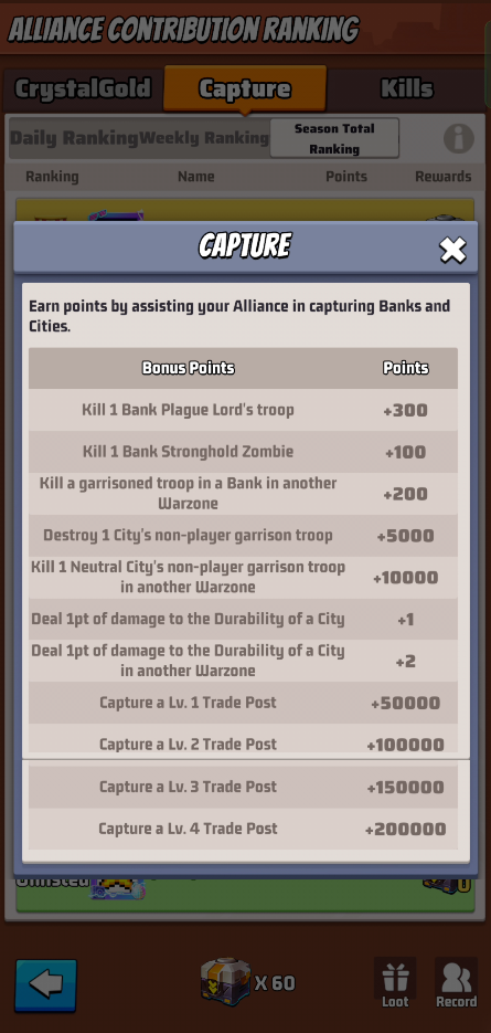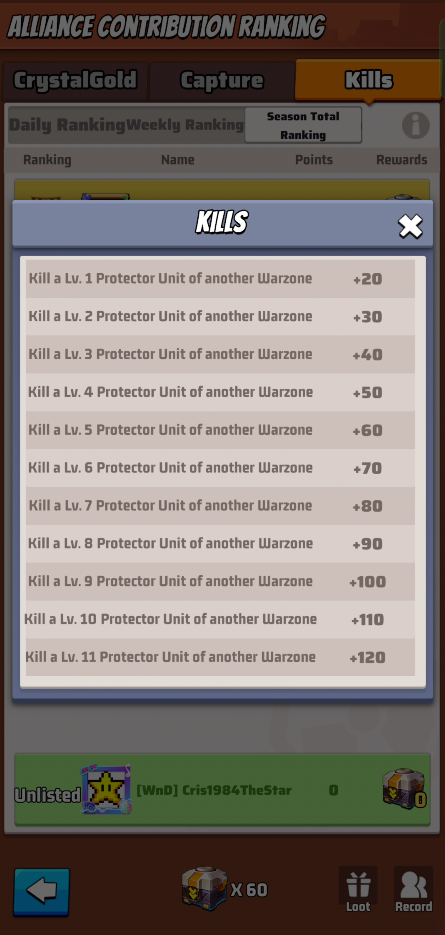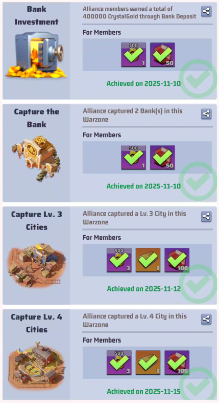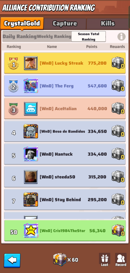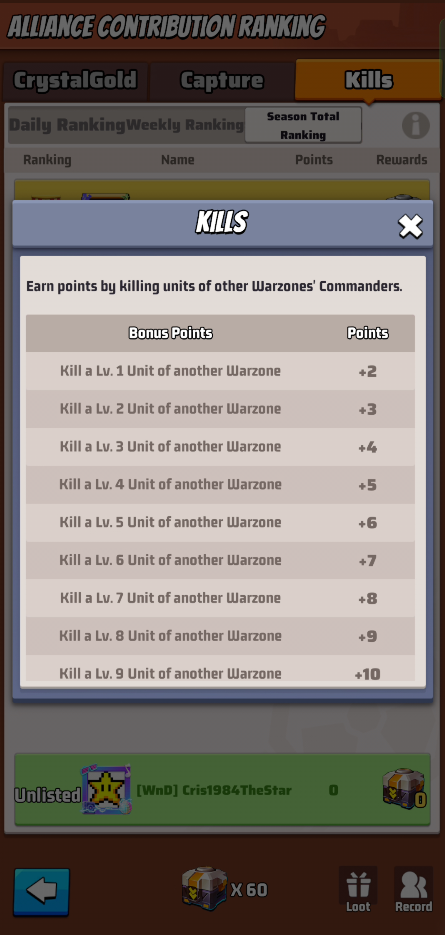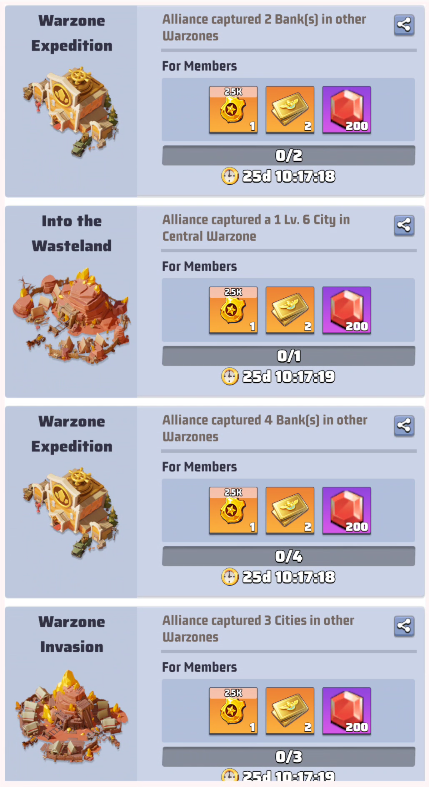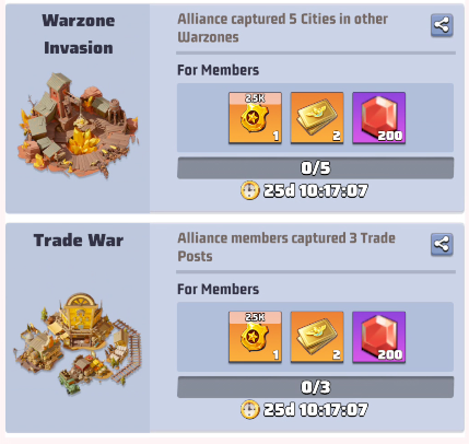 These ranks don’t give you rewards, but your R4/5 could decided based on these metrics to reward you with loot rewards. Loot rewards are earned by the alliance capturing territories and can be distributed by R4/5 as they want.