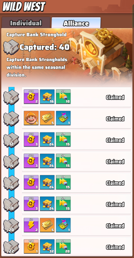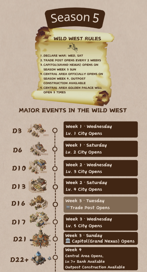 Classic strongholds from previous seasons have now been fully upgraded into Banks. Banks allow you to deposit seasonal resources—the longer they are stored, the greater the returns. But beware: if a bank falls, all deposits will become spoils for the enemy.Get Ready For Season 5! Welcome to Wild West! 🤠