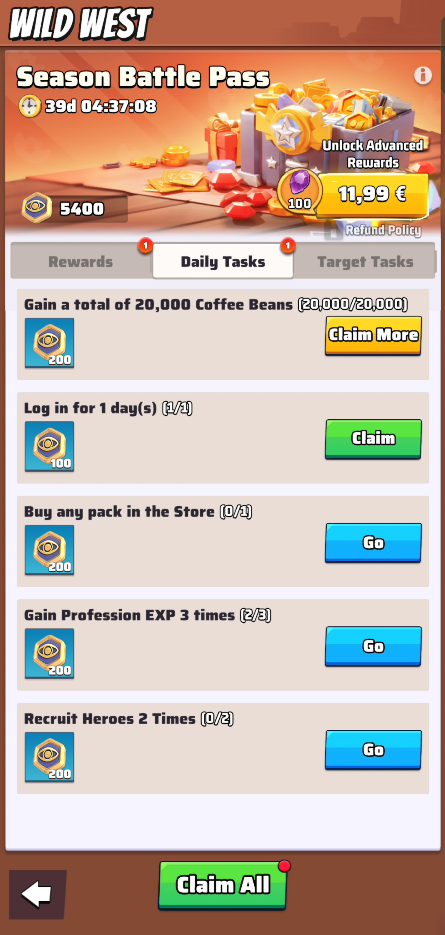 In fact, once you completed a daily task activity, you can collect the rewards clicking on “Claim” and afterwards, you will also be able to click on “Claim more” to receive those rewards again.