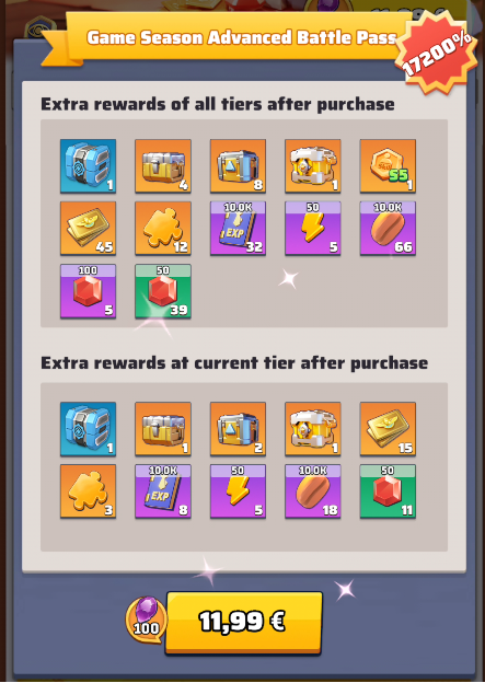 - Purchasing the Game Season Luxury pass will NOT automatically give you also the Game Season Advanced items, as they are seen as 2 different purchases to do. So if you want the items of both Advanced and Luxury columns you need to buy ~11,99 € + ~23,99 €.