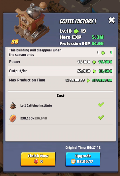 - Additional Coffee Factory Workshop: while the weekly pass is active it will produce coffee. This feature will expire with the pass.