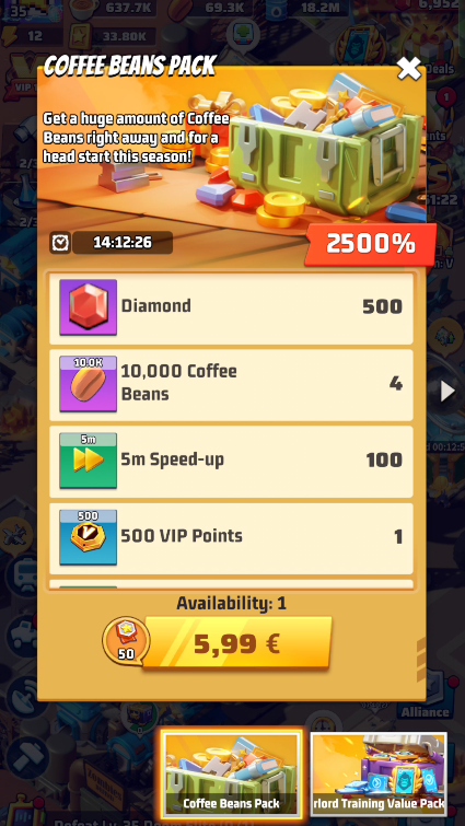 In the first week of Season 5 it is possible to purchase Coffee Beans Packs.
