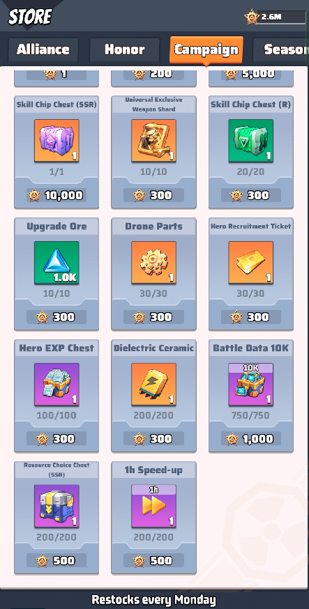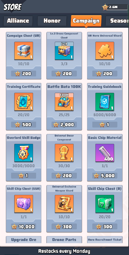 A new item introduced in Campaign during Season 5 starting from early servers is the Battle Data 100K for 2000 Campaign medals.