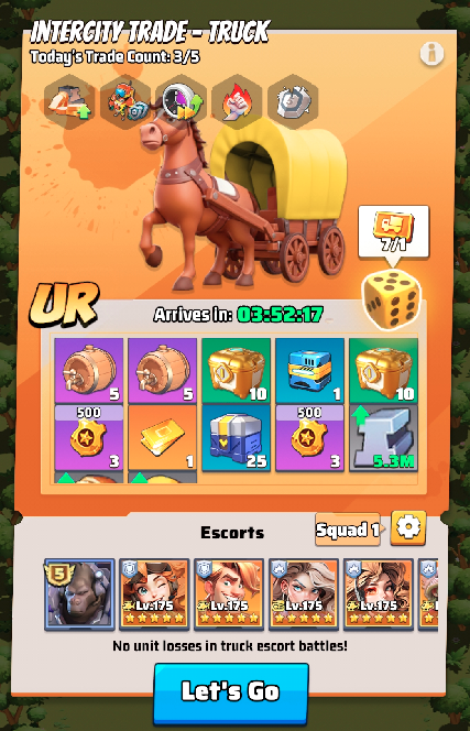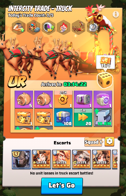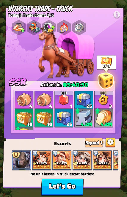 No more 24/7 battles! Fierce fights now take place only during 3 fixed war time slots per day. Alliances can set an immunity time, granting members up to 15 consecutive hours of rest to recover. During immunity, you’re still free to attack others—ensuring you can rest while keeping your offensive edge.- Cross-Warzone Trade Train