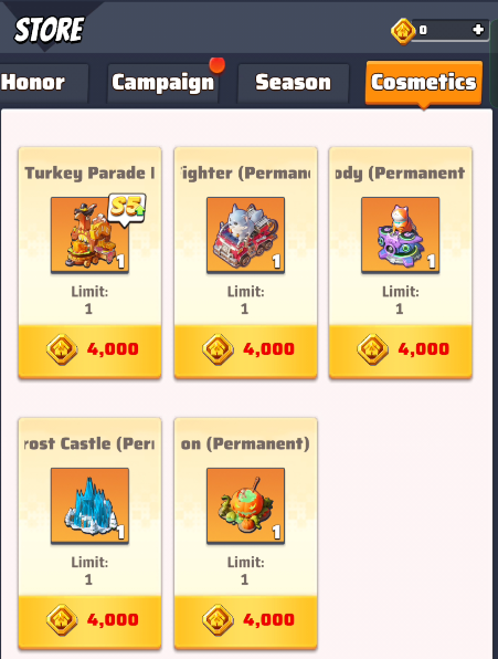 Season 5 features Turkey Parade Float as base skin with seasonal boosts (check out here the details), it can be purchased in the Cosmetics store (~400$).