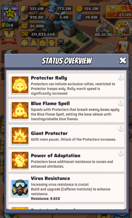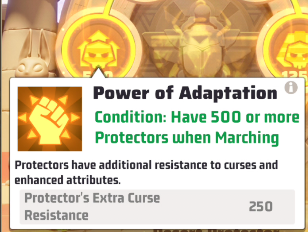 - Power of Adaptation (unlocks at 500 or more Protectors stationed in Protector's Field)