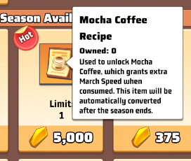 In the first week of Season 5 it is possible to purchase Coffee Beans Packs.