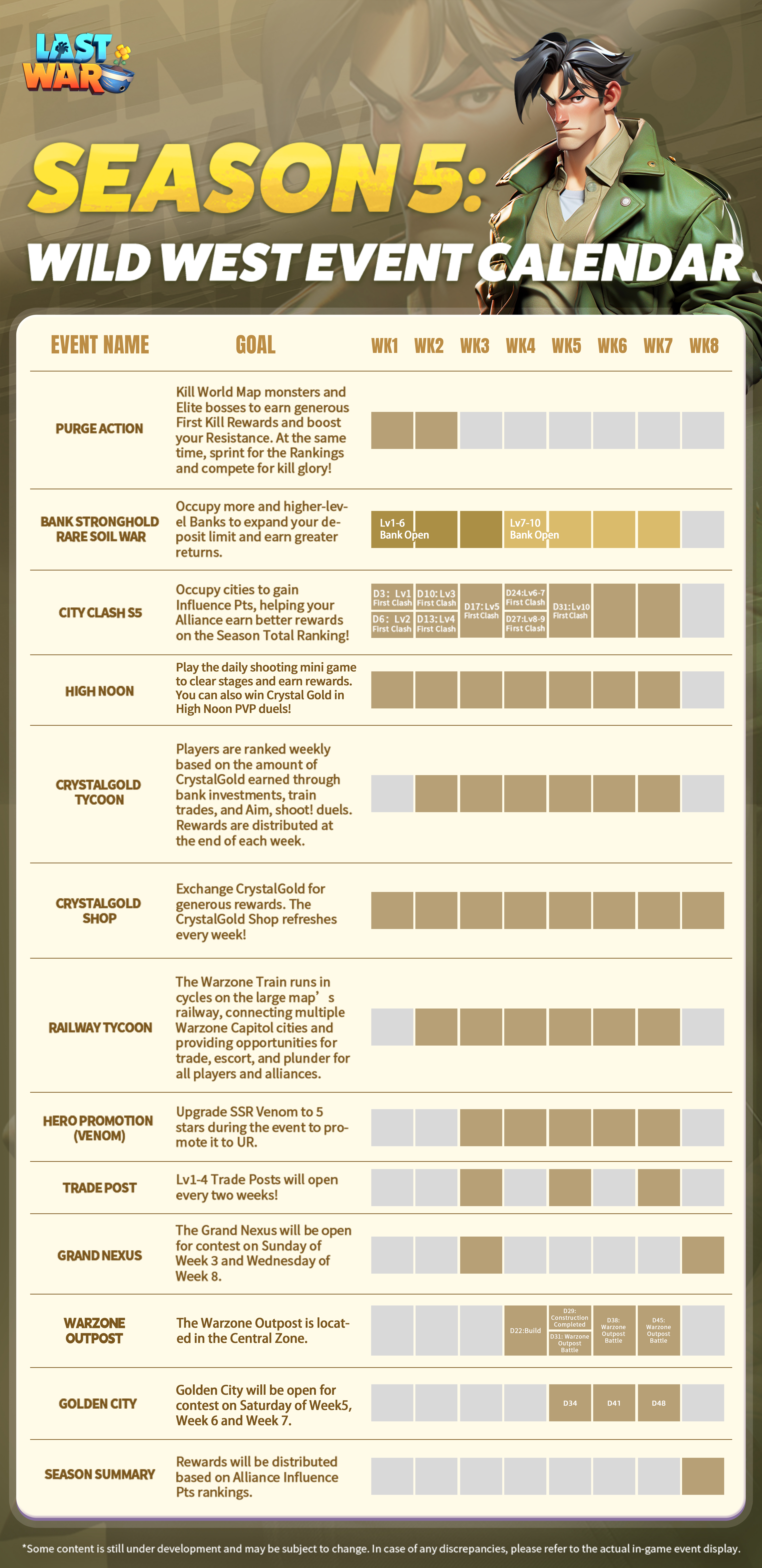 Classic strongholds from previous seasons have now been fully upgraded into Banks. Banks allow you to deposit seasonal resources—the longer they are stored, the greater the returns. But beware: if a bank falls, all deposits will become spoils for the enemy.Get Ready For Season 5! Welcome to Wild West! 🤠