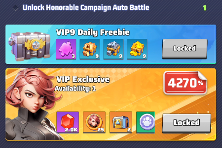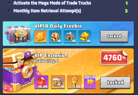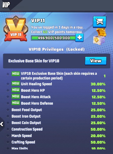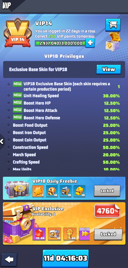 Reaching VIP18 level is the ultimate goal, but clearly it is limited to high spenders.
