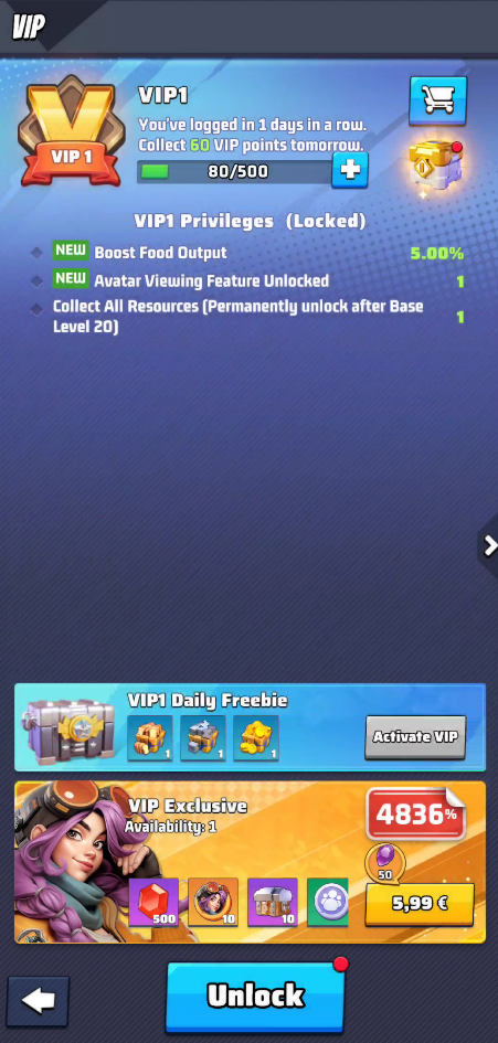 - you see the Unlock button if your VIP status is not active