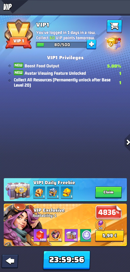 See the full strategy here: VIP time purchase: Best strategy for free-to-play