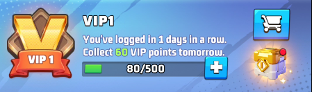 - the advancement to the next VIP level on the green progress bar based on collected VIP Points, there is a button to buy additional VIP Points
