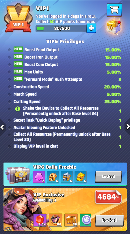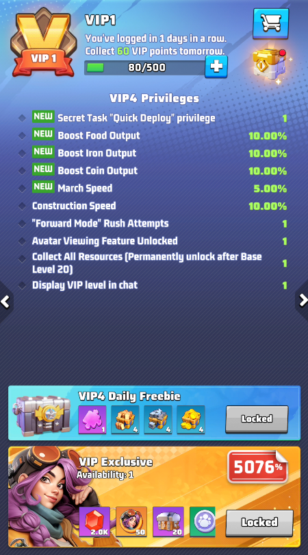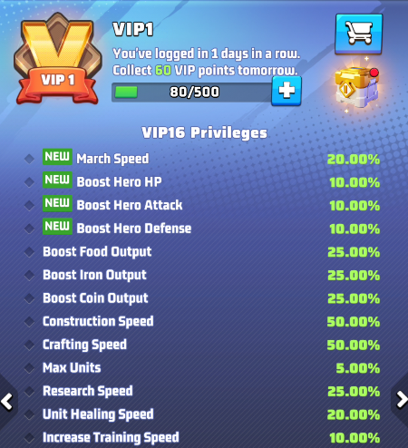 - Stack resource production buffs: Pair VIP bonuses with other boost items or commander skills to enhance resource gain even further.